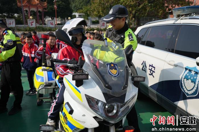 在警用摩托车展示区,交警们介绍了警用摩托车的功能和在交通管理中的作用,并指导学生佩戴头盔、体验乘坐,让孩子们零距离了解警务工作。