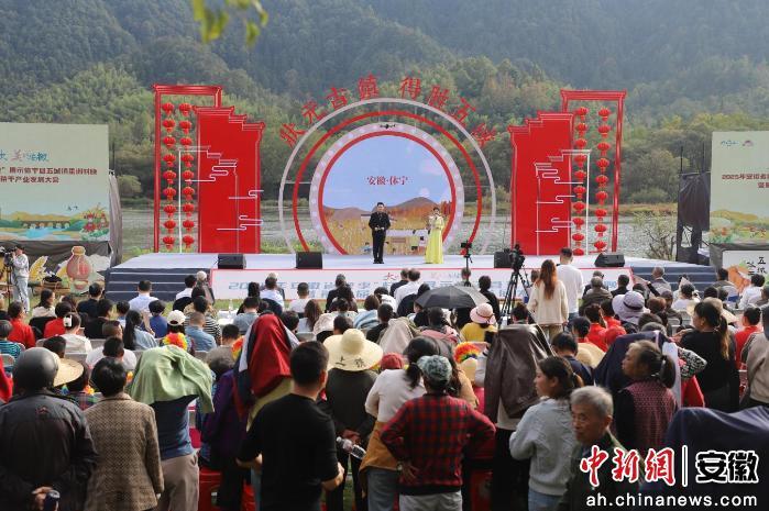 中新网安徽新闻10月30日电 (唐丽秀 吴玉洁)10月29日,恰逢重阳佳节,“大地欢歌美好安徽”2025年安徽省秋季“村晚”示范展示休宁县五城镇星洲村晚暨第二届五城茶干产业发展大会启幕。活动将“村晚”文艺演出与地方特色产业推介、重阳敬老传统深度融合,集文艺表演、非遗展示、中医药文化传承、农产品展销、敬老互动于一体,为当地民众及游客呈现了一场兼具艺术观赏性、文化传承性与产业推动性的乡村文化宴会。