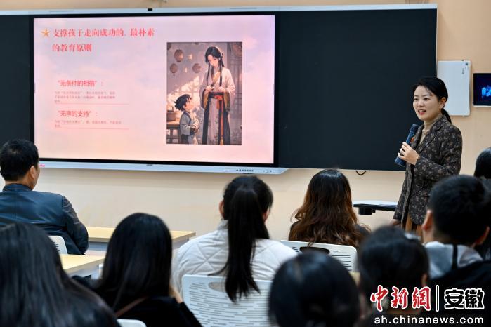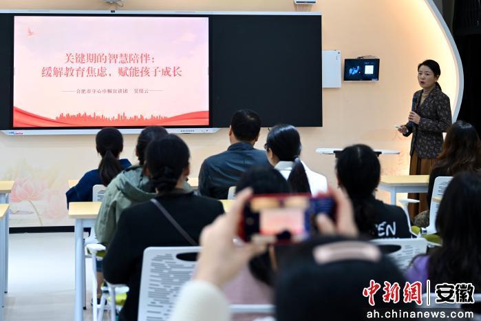 中新网安徽新闻11月7日电 (方紫宁 李庆)11月5日下午,安徽师范大学附属肥西第二中学举办了“守心”巾帼第二十四期家长学校活动。本次活动邀请“守心”巾帼宣讲团吴绍云老师担任主讲,以“缓解教育焦虑,赋能孩子成长”为主题,为九年级家长代表带来专题讲座。