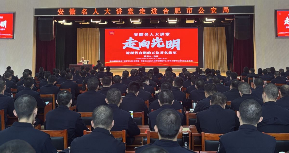 讲座中,全国优秀教师、安徽省委讲师团理论宣讲专家钱斌教授,以李克农等五位合肥籍将军的生平为脉络,生动还原他们在不同历史阶段坚守信仰、践行使命的英雄历程。从战火中的浴血抗争到和平年代的忠诚奉献,一个个扎根安徽本土的红色故事,让“行走的思政课堂”充满感染力,现场不时响起热烈掌声,新警们深受触动。