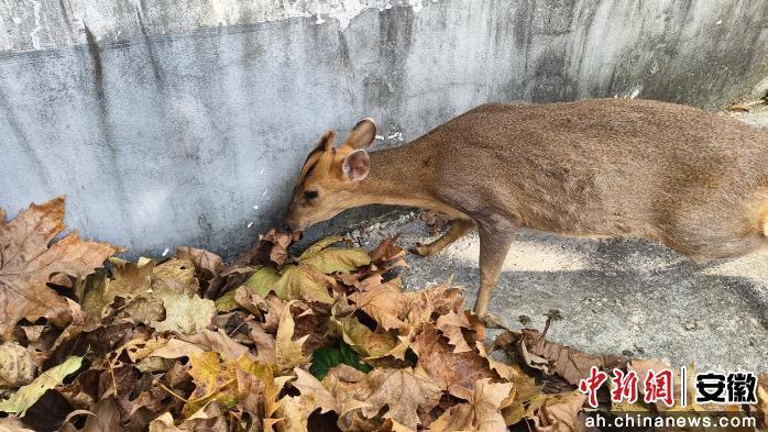 中新网安徽新闻11月18日电 (李静)11月18日上午,一只野生黄麂意外闯入黄山市祁门县大坦乡大中村村委会办公场所,经乡村工作人员及时救助并移交林业部门,现已安全回归自然。