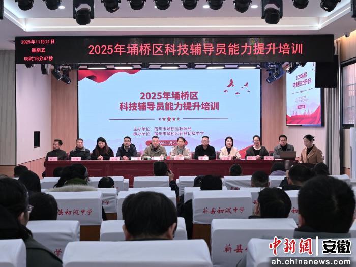 中新网安徽新闻11月24日电 (卢晴晴)近日,由埇桥区教育体育局主办、蕲县初级中学承办的“2025年埇桥区科技辅导员能力提升培训”活动在蕲县初级中学报告厅举行。区教体局相关负责人、全区各督导教研协作区的分管负责人、科技辅导员200余人参加了本次培训。
