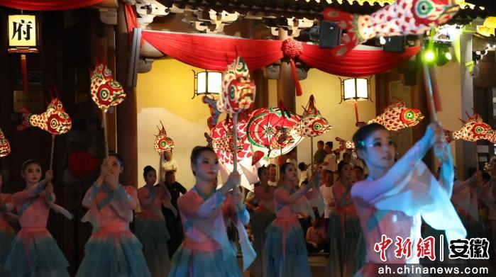 “近年来,徽州古城景区深挖文旅消费潜力,持续打造徽州鱼灯IP,推出非遗市集、‘徽州府有喜’沉浸式演出、古风旅拍等产品,并盘活闲置资产打造了新安养生堂、大鱼神灯馆等特色文创店,目前已集聚‘夜娱、夜演、夜游、夜购、夜宿、夜宴’等全业态,实现从门票经济向新业态、夜经济、服务经济的转型。2025年以来,接待游客177万人次,较上年同比增长28%。”歙县旅游景区管理有限公司经理汪晶说。