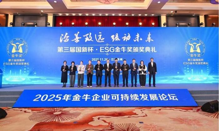 中新网安徽新闻12月1日电 2025年金牛企业可持续发展论坛暨第三届国新杯·ESG金牛奖颁奖典礼近日举行。论坛以“治善致远 绿动未来”为主题,汇聚数百位政商学界嘉宾,共话企业可持续发展与ESG(环境、社会及公司治理)生态构建。