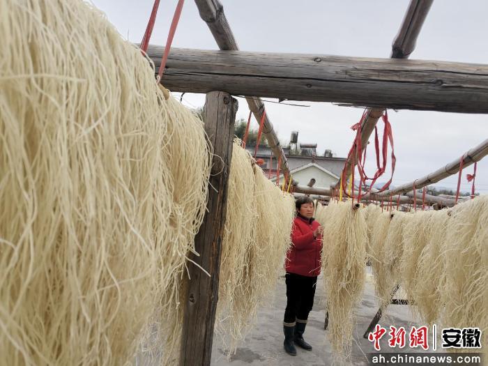 中新网安徽新闻12月3日电 (李晗)初冬时节,走进旌德县庙首镇,浓郁的红薯清香扑面而来。田间地头的红薯刚收罢,农户家中的制粉工坊已热闹起来,洁白的粉丝如银丝般挂满晾晒架,在阳光下泛着光泽,勾勒出一幅“薯”香满园、农户增收的丰收图景。