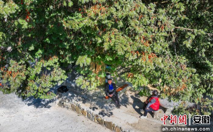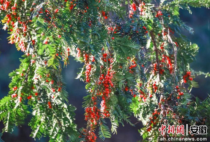 中新网安徽新闻12月9日电(郑宏)近日,在歙县石门乡竹岭村青峰自然村,一片罕见的南方红豆杉群进入挂果期。累累红果点缀在苍翠枝叶间,宛如冬日跃动的火焰,与白墙黛瓦的徽派民居相映成趣,构成一幅绝美的生态画卷。