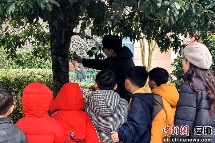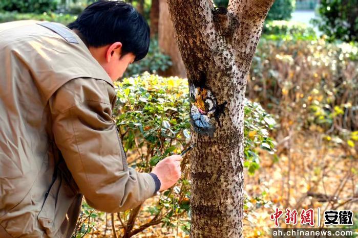 中新网安徽新闻12月23日电 (沈云鹏 张玮崴)近日,走进阜阳市颍上县第四小学的校园内,一个个五彩缤纷的“树洞画”成为校园里的艺术焦点——形状各异的树洞里,小猫探出脑袋,松鼠藏身枝干,熊猫憨态可掬,花朵悄然绽放……这些由师生们精心绘制的“树洞画”,用奇思妙想为冬日校园注入了鲜活的生命力,也让美育课堂延伸至校园的各个角落,让艺术在与自然的对话中浸润童心。