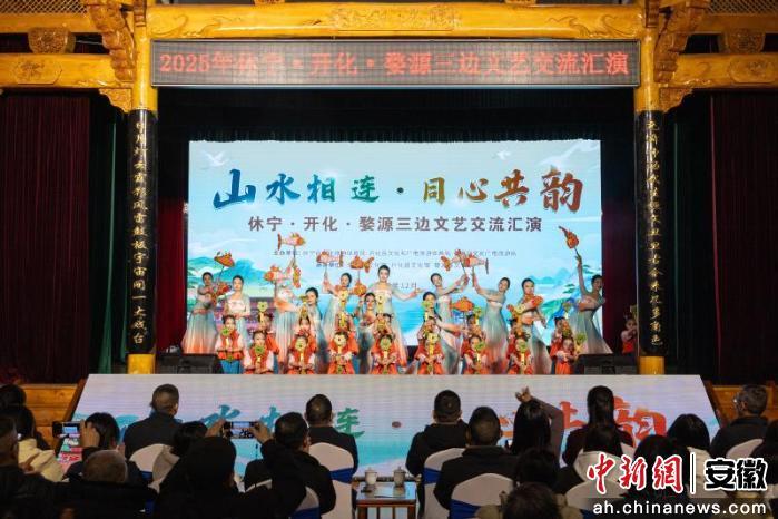 中新网安徽新闻12月26日电 (周文娟)近日,“山水相连 同心共韵”2025休宁·开化·婺源三边文艺交流汇演在休宁县举办,三地文艺工作者齐聚一堂,共同续写浙皖赣三省毗邻地区文化交融新篇章。