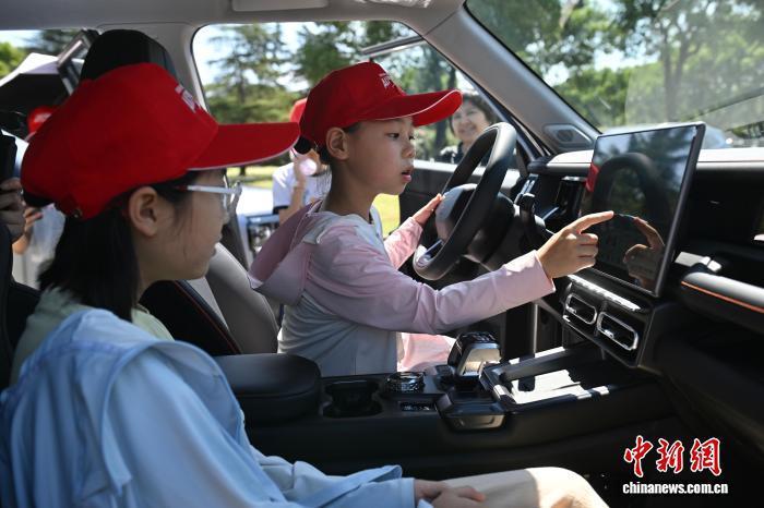 8月23日,安徽科创产业研学游——“AI汽车大探索”活动正式启程。来自全国各地的青少年走进芜湖奇瑞汽车,将汽车工厂化作“校外课堂”,沉浸式感受汽车研发与制造背后的科技魅力。该活动通过向全国青少年展示安徽AI与汽车产业融合的创新生态,在青少年们心中植入科技种子,为安徽打造“汽车强省”储备未来顶尖人才。图为青少年近距离参观汽车内部构造。中新社记者 韩苏原 摄