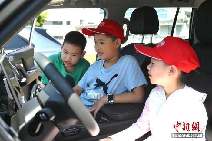 图为青少年近距离参观汽车内部构造。中新社记者 韩苏原 摄