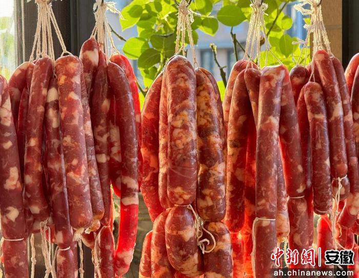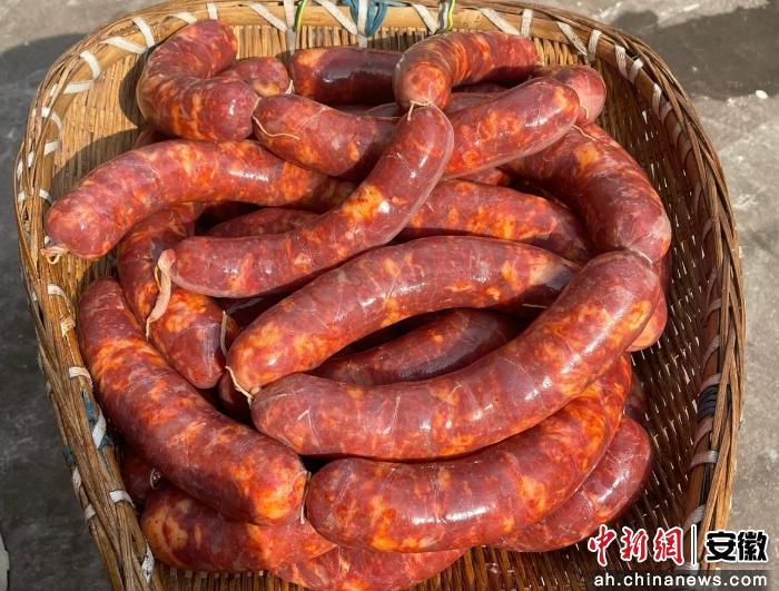 中新网安徽新闻12月29日电 (王琴)冬日晴好,旌德县三溪镇霍家桥村村民朱玉梅家的小院里肉香弥漫。这几日,一家人都忙着灌制香肠,为餐桌添上一味鲜香。