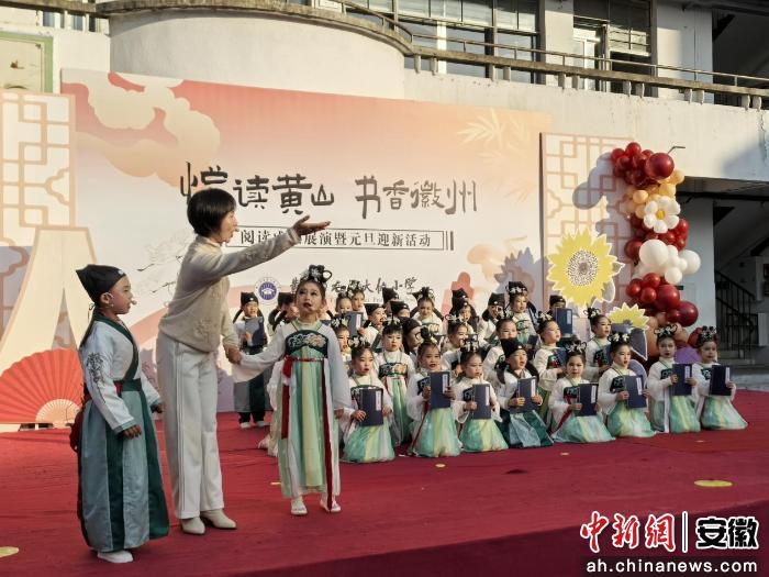 在屯溪大位小学,孩子们齐声诵读《悯农》《春晓》等经典诗篇。随后,各年级学生轮番登台,带来情景剧、创意走秀、舞蹈表演等节目,尽显少年儿童朝气蓬勃的精神风貌,也生动展现了学校美育工作的成果。“今天我表演的节目《曙光》讲述了一个动人的红色故事。新的一年,我会努力在学习上更加勤奋,在生活中更加自律,做一名有理想、有担当的新时代好少年。”屯溪大位小学学生范芝栖表示。