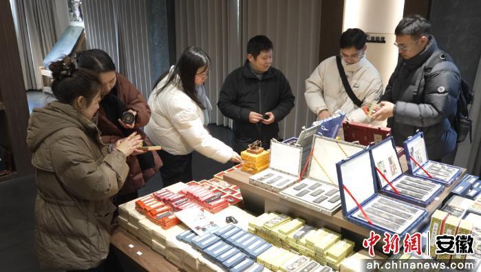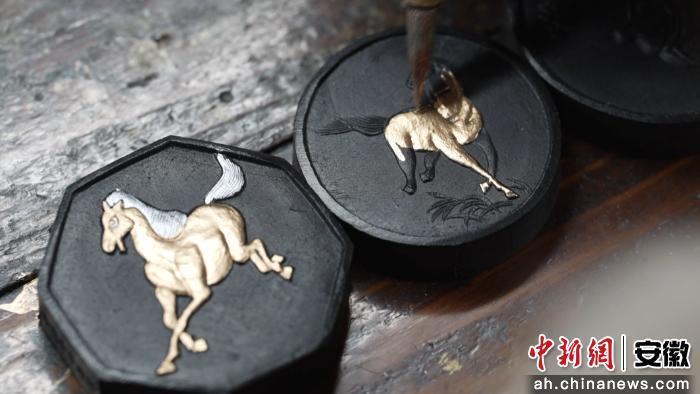 走进歙县老胡开文墨厂,展台上陈列着各式以马年为主题的作品,融合国画、卡通等多种艺术风格,将对新年的美好祝愿凝聚于方寸徽墨之中。
