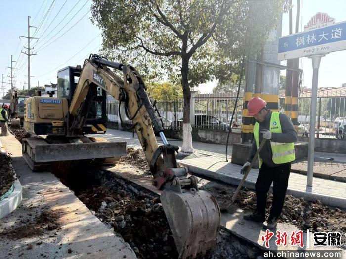 在休宁县城区多处施工现场,挖掘机正有序开挖路面,技术人员精准焊接管道,监理人员严格监督施工质量,各环节紧密衔接,确保工程高效推进。