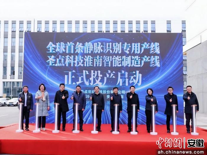 当日,投产仪式在圣点科技安徽智能制造中心启动。田家庵区相关领导及市发展改革委、市工信局等部门负责人,与圣点科技董事长张烜、副董事长钱昊旻共同以“掌静脉识别”方式启动投产。张烜在欢迎辞中说,圣点科技将以淮南产线投产为依托,深化行业合作,以静脉识别技术夯实数字经济信任底座。