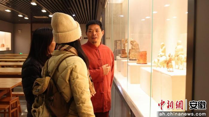 中国工艺美术大师、国家级非物质文化遗产徽州竹雕代表性传承人洪建华介绍竹雕。
