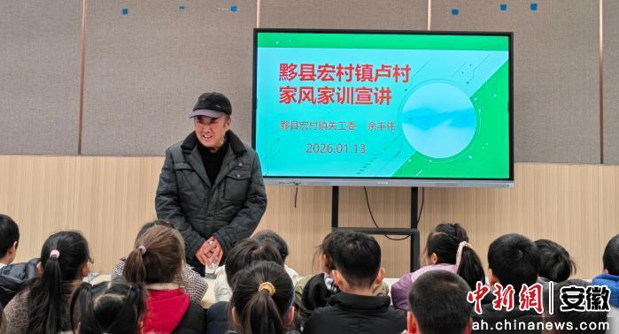 中新网安徽新闻1月13日电 (汪敏 朱秀琴 余秀娟)为传承优良家风文化,深化多元“导-师-制+”育人成效。1月13日,黟县宏村镇关工委工作人员余丰伟走进宏村学校,开展以卢村家风家训为核心的主题宣讲活动,将千年古村的文化基因与校园“导-师-制+”有机融合,为学子们送上一堂生动的品格教育课。