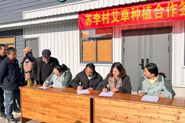 “人们越来越重视健康保健,艾草制品市场空间大,这两年村里的艾草项目销售额50多万元。”戴后佳说。今年村里开始尝试“村集体经济+农户”模式,鼓励村民在自家闲置土地种植艾草。1月9日,秋之畔农业发展有限公司与26户苏李村农户共同签署种植协议,现场发放优质艾苗,26户农户将在160亩闲置土地上种植艾草。