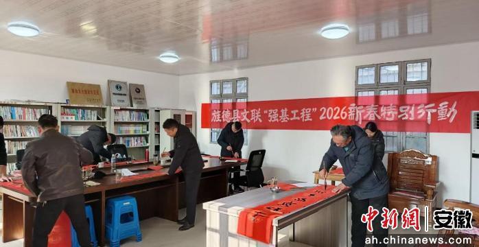 中新网安徽新闻1月26日电 (李露)近日,旌德县三溪镇路西村联合旌德县文学艺术界联合会共同开展“强基工程”2026新春特别行动,以笔墨寄情,为村民送上新春祝福。