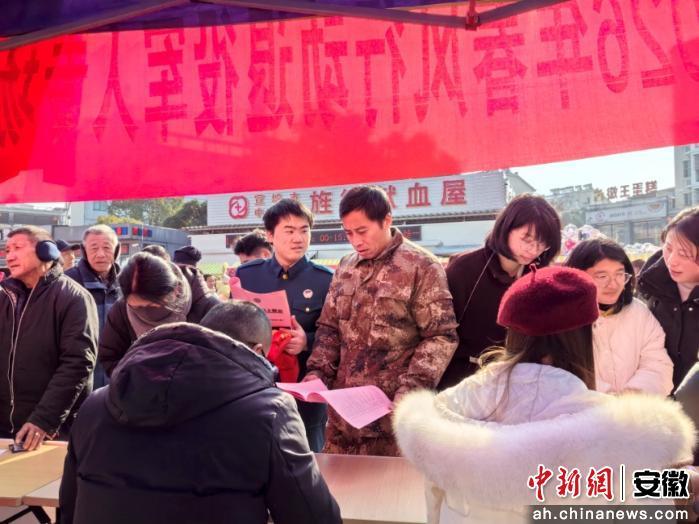 中新网安徽新闻1月27日电 (何祥)近日,旌德县人民广场人头攒动,由县民政局(退役军人事务局)联合县人社局举办的春风行动就业援助服务季启动仪式暨新春首场退役军人专场招聘会拉开帷幕。