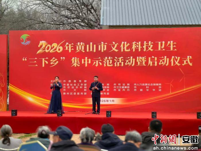 中新网安徽新闻1月29日电 1月29日上午,2026年黄山市文化科技卫生“三下乡”集中示范活动暨启动仪式在徽州区西溪南镇石桥村举行,现场惠民服务、文艺演出、特色市集同步展开,为当地村民送上丰富服务与新春暖意。