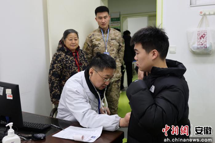 中新网安徽新闻2月4日电 (沈云鹏 黄敬亚)连日来,阜阳市颍上县2026年上半年度征兵体检工作全面展开。来自全县30个乡镇的应征青年怀揣着对军营的向往与报国热情,分批有序接受体检。