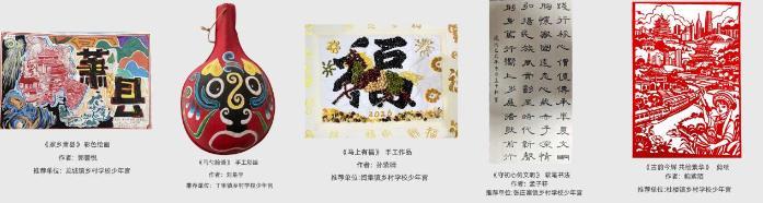 线上展厅内,百余件优秀作品涵盖绘画、书法、手工等多个门类,内容丰富、形式多样。绘画作品中,孩子们以稚嫩笔触勾勒乡村新貌、描绘团圆年味,色彩斑斓间满是对美好生活的向往;书法作品里,笔墨横姿间尽显传统文化传承,篆隶楷行草各具韵味;手工作品巧思独具,废旧材料变身精美摆件,既展现环保理念,又饱含童真创意。