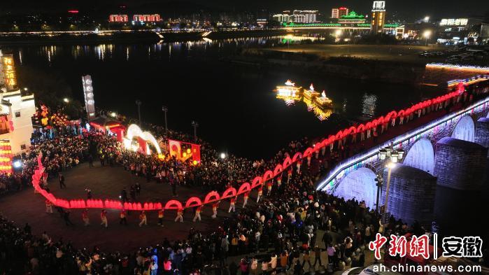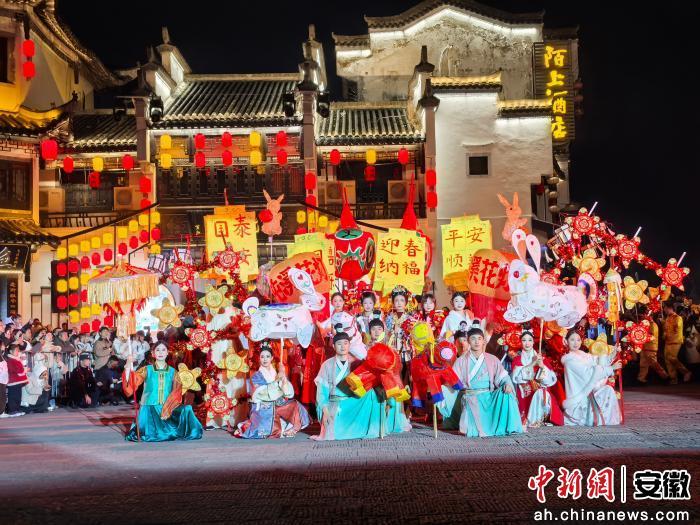 中新网安徽新闻2月6日电 流光溢彩,照亮千年徽州;烟火长街,踏响新春鼓点。2月4日,以“昱耀千灯 马上有福”为主题的2026屯溪区千灯纳福迎春街会启幕。