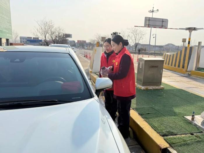 在张庄寨收费站,“宿淮先锋”的身影处处可见。收费岗亭内,收费员以规范的操作和亲切的微笑,为每位过往司乘提供高效温馨的服务。便民服务台前,身着红色志愿服的队员们始终值守,备齐热水、急救药品、简易工具等物资,随时准备提供应急帮助。遇到贴有“囍”字的婚车车队,队员们还会主动上前引导、道贺,以暖心服务为新人的旅途添上一份祝福。