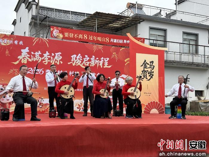 中新网安徽新闻2月11日电 (吴成亮)2月10日下午,以“春满李源·骏启新程”为主题的祁门县凫峰镇李源村首届“村晚”,在凫峰率水河畔开演。