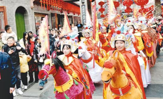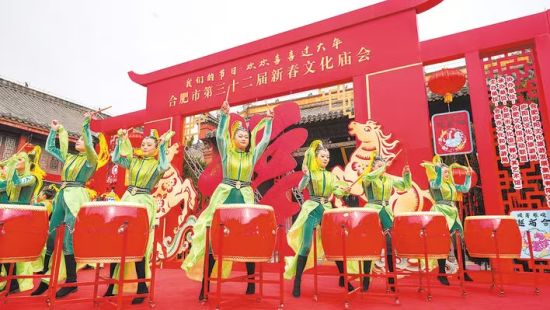 中新网安徽新闻2月12日电 (夏伟)“我们的节日·欢欢喜喜过大年”合肥市第32届新春文化庙会贺新春专场演出2月10日在合肥城隍庙启幕。活动结集民俗踩街、文艺演出、非遗市集、年画展览、义务写春联等互动于一体。