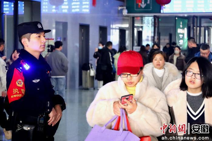 中新网安徽新闻2月13日电 (沈云鹏 夏申远)随着春节脚步日益临近,铁路运输迎来节前返乡客流高峰。高铁颍上北站出站口处人头攒动,蚌埠铁路公安处颍上北站派出所的青年民警们立足“筑梦”青年理论学习小组,坚持党建带团建,成立党团员春运青年铁警突击队,以服务旅客为根本,落实落细各项工作措施,全力护航旅客平安出行。