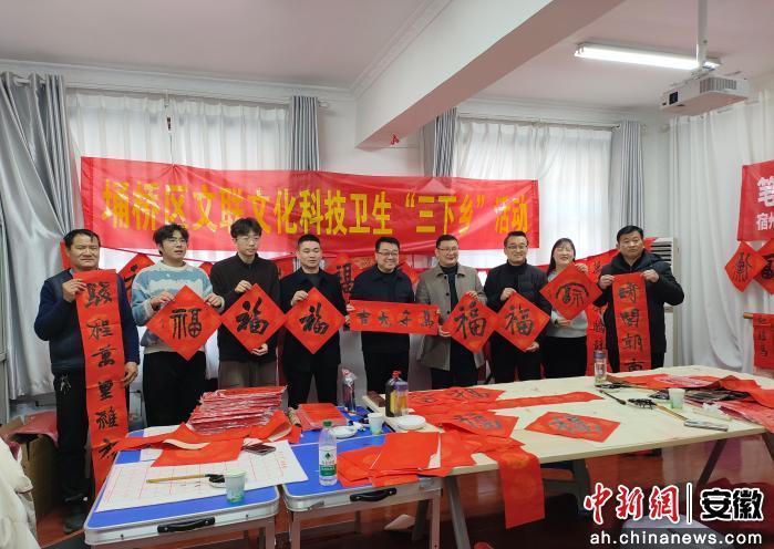 中新网安徽新闻2月14日电 (班强)近日,宿州市埇桥区东关街道联合区文联开展文化科技卫生“三下乡”暨丙午马年“万福迎春 情暖江淮”文艺志愿服务活动,以笔墨传情,为辖区民众送上浓浓的新春祝福。