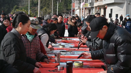 中新网安徽新闻2月16日电 (陈艳军 李玉双 )近日,一场温馨喜庆的村宴在祁门县溶口乡景潭村上演。村民们欢聚一堂,品美食、看演出、写春联,欢欢喜喜迎接农历新年的到来。