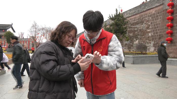 在徽州古城府衙广场前,大学生志愿者刘恺阳正耐心地为游客指引物品寄存处的位置。这位大二学生主动报名参与春节志愿服务,希望为家乡的文旅事业出一份力。他和另外三名志愿者身穿红马甲,穿梭在古城各处,或搀扶老人上下台阶,或为游客答疑指路,成为古城一道温暖的风景线。