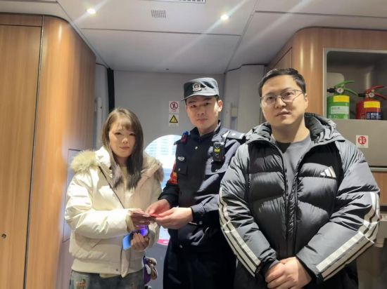 最终,乘警解学信在多方打听后,了解到张女士因行程需要,进行了同车换乘,从原座位更换至了12号车厢1D座位,随后,乘警与列车长紧急赶到12号车厢,此时张女士正在座位上休息,对自己遗落红包一事浑然不知。面对正在熟睡的张女士,乘警轻声将其唤醒,并询问是否遗失了物品。张女士下意识地摸了摸口袋,这才发现红包不见了。经现场核对身份信息及现金数额,确认该红包正是张女士刚刚领取的奖金,分文未少。拿着失而复得的奖金,张女士激动不已,并执意要用现金对方先生表达谢意,但被方先生微笑婉拒。