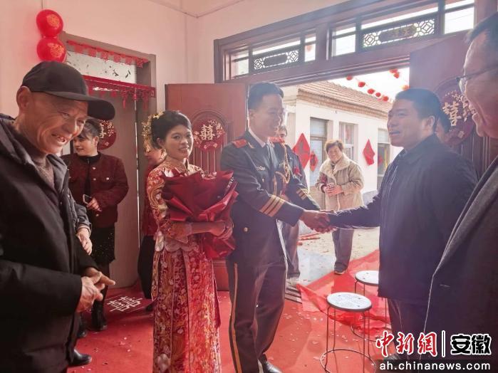 中新网安徽新闻2月26日电 (王金凤)近日,宿州市萧县新庄镇小集子村一对新人举办了一场简约温馨的零彩礼婚礼。他们以简单朴素的方式喜结连理,为当地移风易俗树立了鲜活榜样。