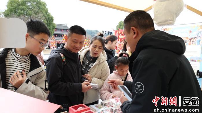 中新网安徽新闻2月26日电 (汪洁)25日,歙县徽州古城府衙广场前的有奖发票礼品兑换点前,工作人员向过往市民和游客讲解活动规则,不少游客用手机开具近期于歙县消费的发票,并用手中的“幸运票据”换取一份特色的文创礼品。
