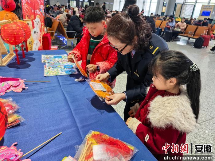 中新网安徽新闻3月2日电 (李颖洁)元宵佳节至,温情暖旅途。为弘扬中华优秀传统文化,丰富旅客出行体验,3月2日,庐江西站在候车室精心开展“浓情元宵·平安同行”主题活动,让南来北往的旅客在奔波的旅途中,感受到浓浓的节日温情与铁路服务的暖意。