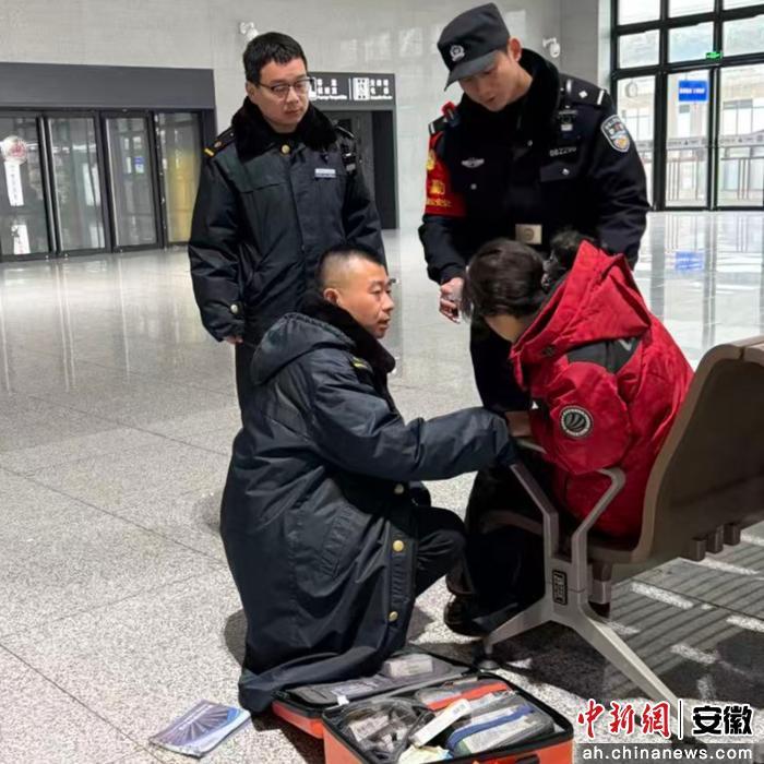 日前,在颍上北站一楼候车室,一名女性旅客候车途中突然晕倒,情况十分危急。“快!有人晕倒了!”蚌埠铁路公安处颍上北站派出所执勤民警李传涛巡逻时及时发现,立即飞奔上前查看。经初步检查与判断,旅客系低血糖、过度疲劳引发晕厥,意识模糊。