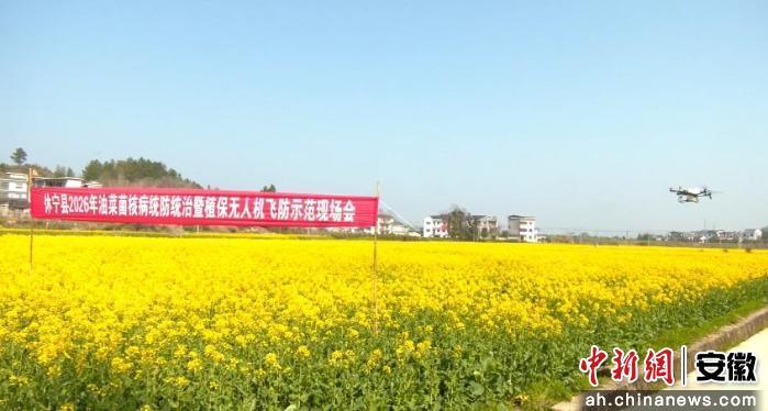 当前,休宁县油菜陆续进入初花期关键生育期,也正值菌核病防控“黄金窗口期”。在休宁县五城镇龙湾村,成片的油菜花花开正盛。在专业技术人员熟练地操作下,植保无人机在油菜田上空喷洒药雾。
