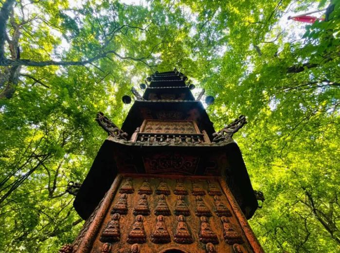 距离皇藏峪不远的天门寺,则呈现出另一种人文意境。这座始建于公元425年的南朝古刹,因山势如双峰壁立、登之如上天门而得名。寺内不仅有树龄约2600年的古银杏、树驮碑等自然奇观,还保存着晒书台、砚墨池、藏书洞等孔子遗迹。千佛塔为七层六面纯铜佛塔,共有1008尊佛像;五蹬石门沿途有摩崖石刻与回文诗点缀,实现登山途中移步换景。
