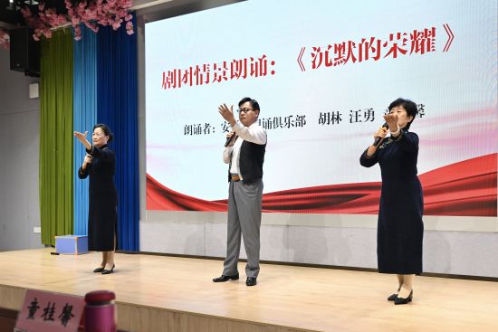 安徽省朗诵俱乐部专家带来了情景朗诵《沉默的荣耀》,学校手工社团展示各类手工作品,科学戏剧社团的原创情景朗诵《派河的一百年》,以青春视角讲述家乡变迁。