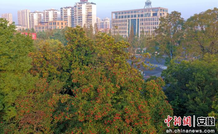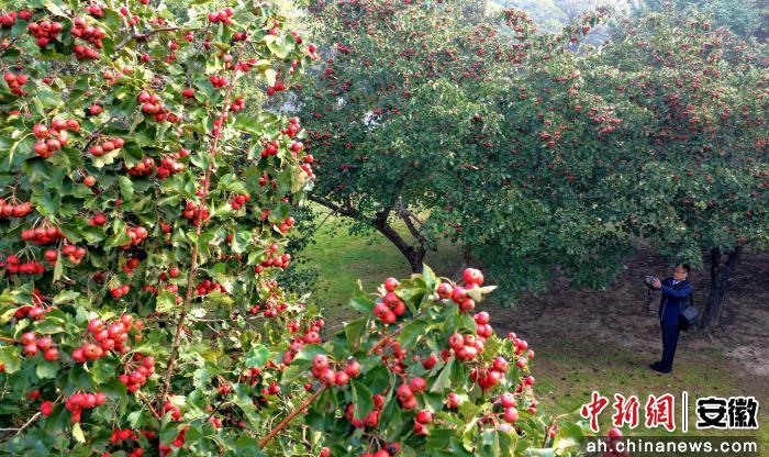 中新网安徽新闻10月30日电 (方文青)金秋时节,阜阳市颍上县城北广场、五里湖生态湿地公园的山楂树进入盛果期,一串串红果缀满枝头,宛若玛瑙挂枝、红灯高挂,成为秋日里最亮眼的景致。