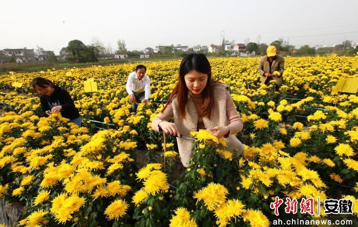 深秋时节,走进白桥镇大许村,一片片金黄色的菊花开得正艳。不远处,村民们正穿梭于花海中,忙着采摘菊花。遍地菊花,点亮了深秋田野,也成了这个时节大许村的一道秋收风景。