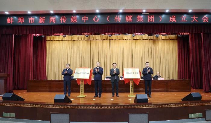 为深入贯彻落实党中央、省委关于推进市级媒体加快深度融合发展的有关要求,进一步提高新闻舆论的传播力、引导力、影响力、公信力,蚌埠整合蚌埠日报社、蚌埠广播电视台和市文化旅游投资集团所属部分企业,组建蚌埠市新闻传媒中心、蚌埠市传媒集团,加快主流媒体全方位、深层次、系统性变革。会上,马军等市领导共同为市新闻传媒中心(传媒集团)揭牌。