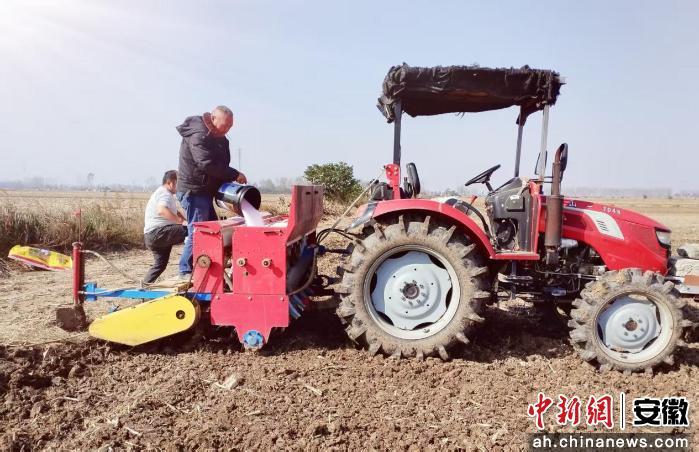 中新网安徽新闻11月10日电 (任效宝)连日来,五河县东刘集镇的田间地头一派繁忙景象,各类农业机械正在播种作业。