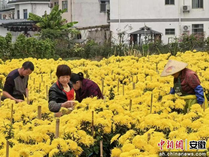 中新网安徽新闻11月12日电 (姚小蝶 方晓坚)走进屯溪区阳湖镇紫阜村庆煌菊花种植基地,成片的金丝皇菊迎风盛放,汇成一片金色海洋。微风拂过,菊香四溢,农户们穿梭在花田间忙碌采收,构成一幅美丽的乡村丰收画卷。
