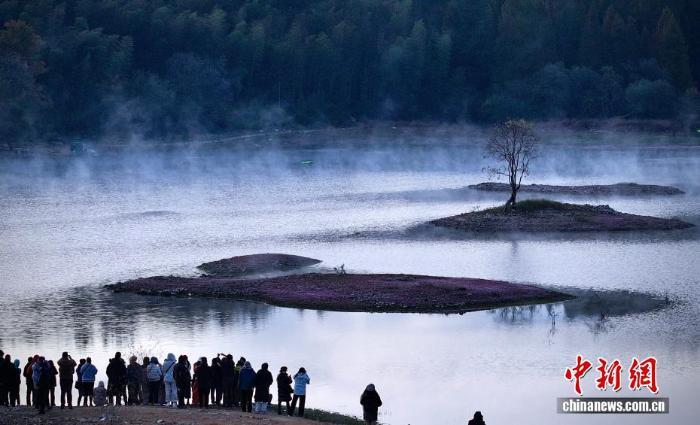 浙江游客李女士说:“虽然今天没遇到晨雾有点遗憾,但日出景色依然非常漂亮。早上六点半到的时候已经很多人了,七点多太阳出来,整个湖面都亮了起来。”