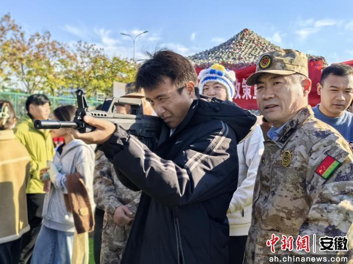 活动还设置了模拟射击体验区,通过虚拟仿真设备,学生近距离接触军事装备,沉浸式感受射击训练的紧张与热血。这一创新形式极大提升了学生的参与感和代入感。“看到这边有射击体验,我特别好奇就过来尝试了一下。虽然只是模拟,但扛起枪的那一刻,真的感受到一种沉甸甸的责任。”学生元汪辉说。